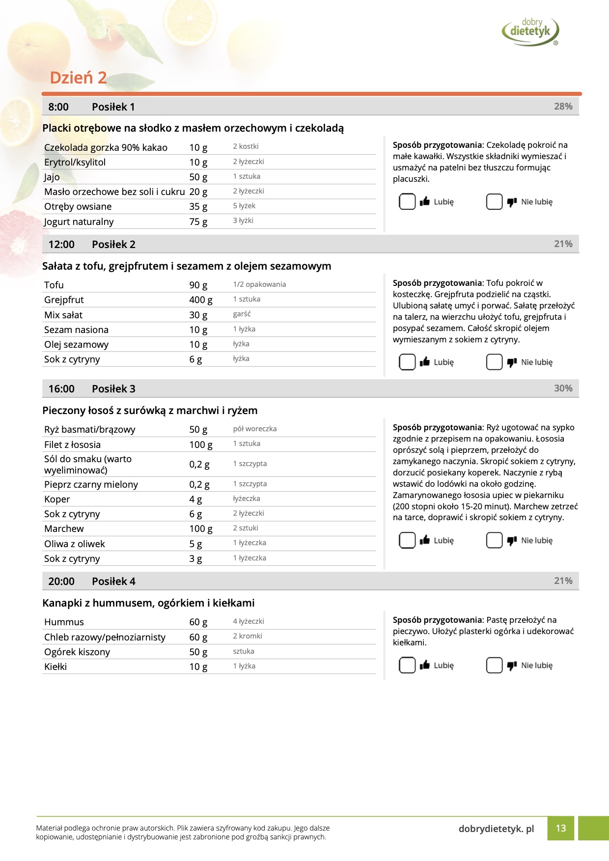 • w formie precyzyjnych jadłospisów wielodniowych (na każdy dzień miesiąca jest opracowany osobny jadłospis). Tutaj nie musisz zastanawiać się co zjeść każdego dnia, gdyż będziesz mieć dokładnie wszystko rozplanowane.
